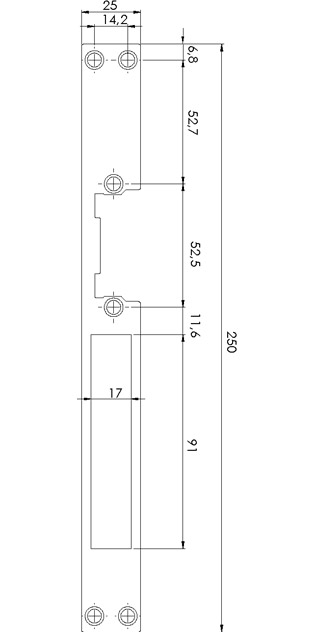 The MX faceplate fits all DORCAS electric strikes as well as some strikes manufactured by Elektra, Bira or JIS.