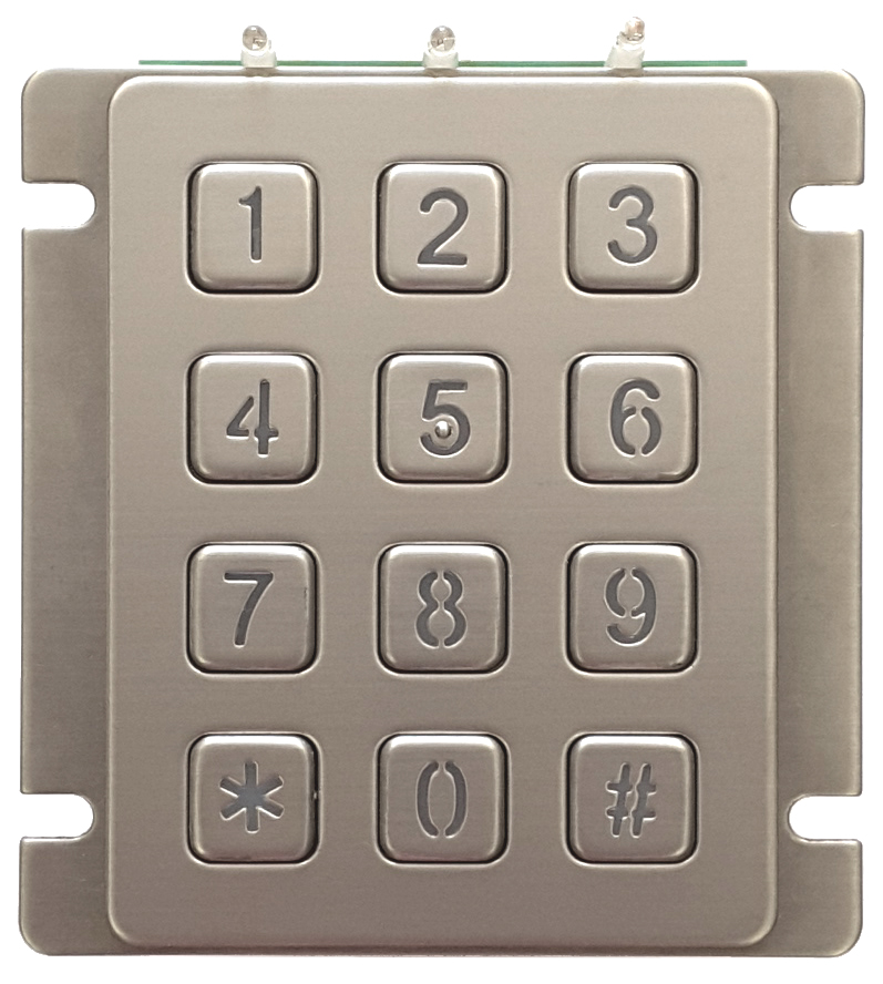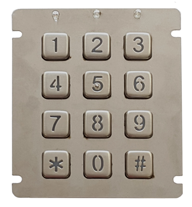 The B880 keypad is weatherproof and vandal-resistant. The keys and the mounting plate are made from stainless steel. Numbers on the keys are backlit with white LEDs.