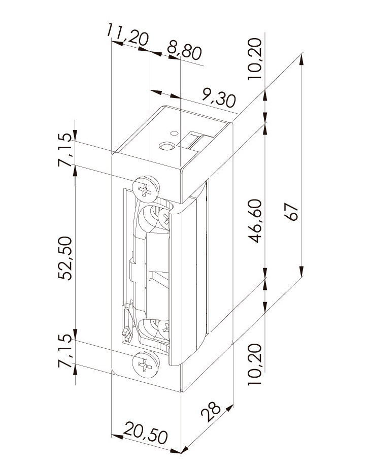 Dimensions: 67 x 20,5 x 28 mm (HxWxD)