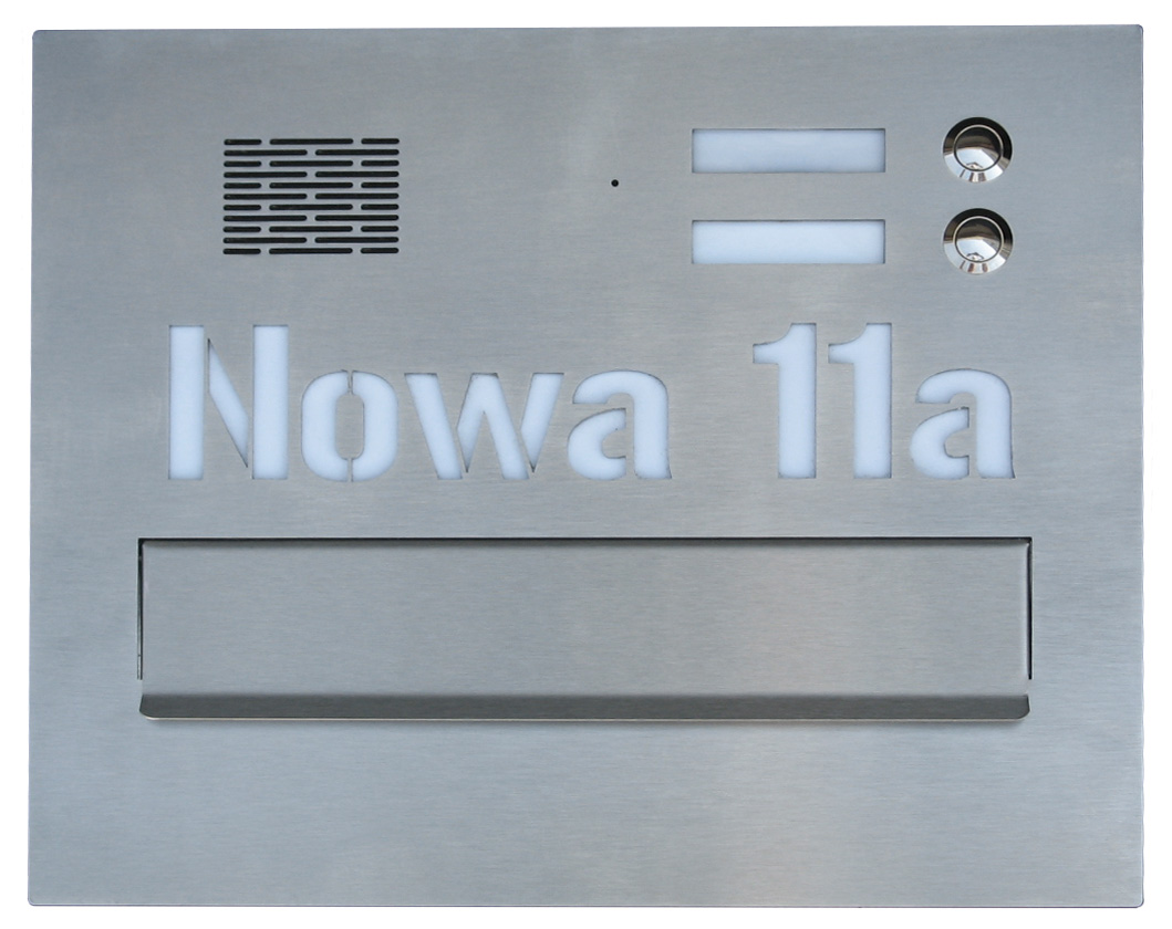 Many features of bespoke mailboxes can be tailored to your individual requirements: dimensions, number of letter slots, colour, installation type, LED-backlit inscriptions (e.g. house number). Our postboxes can be integrated with audio and video door entry systems (audio and video intercoms), keypads, RFID readers and other elements.