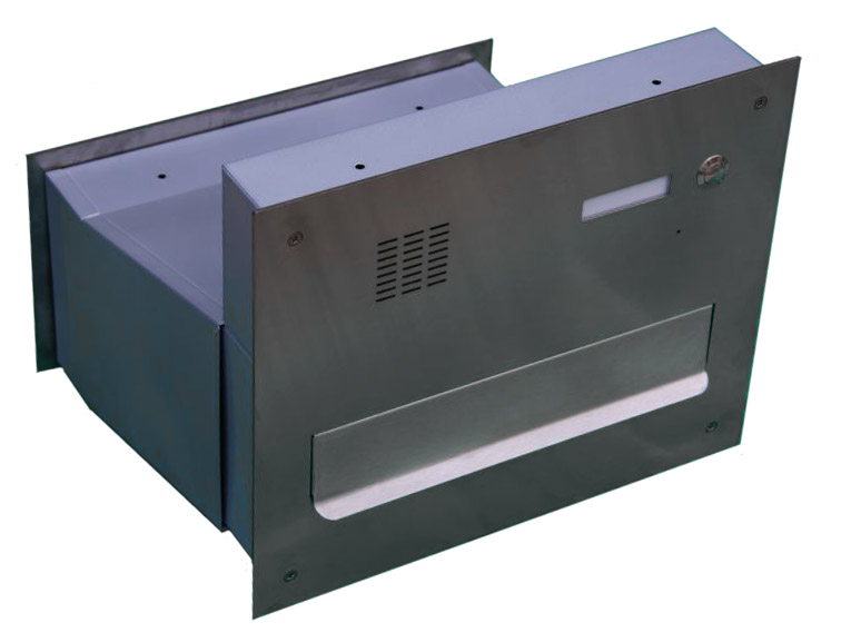 - Mailbox design: front plate, back plate and a two-part telescopic mail chute to be embedded in the wall.