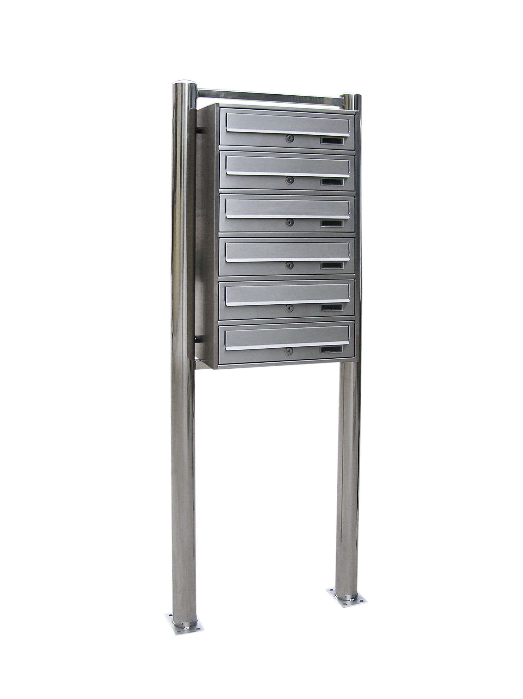 6-wrzutowa skrzynka pocztowa Eurobox GH-V16S ze stojakiem GH-S9F6S, stal nierdzewna