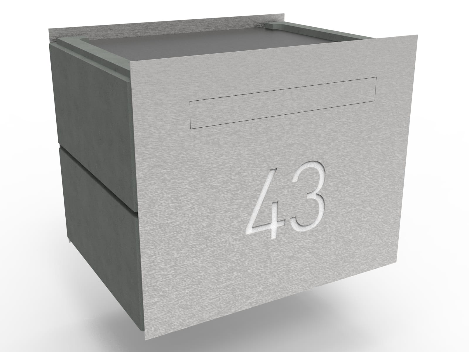 Nowoczesna płytowa klapka osłaniająca otwór wrzutowy jest zlicowana z płytą przednią skrzynki na listy i tworzy z nią jedną estetyczną płaszczyznę.