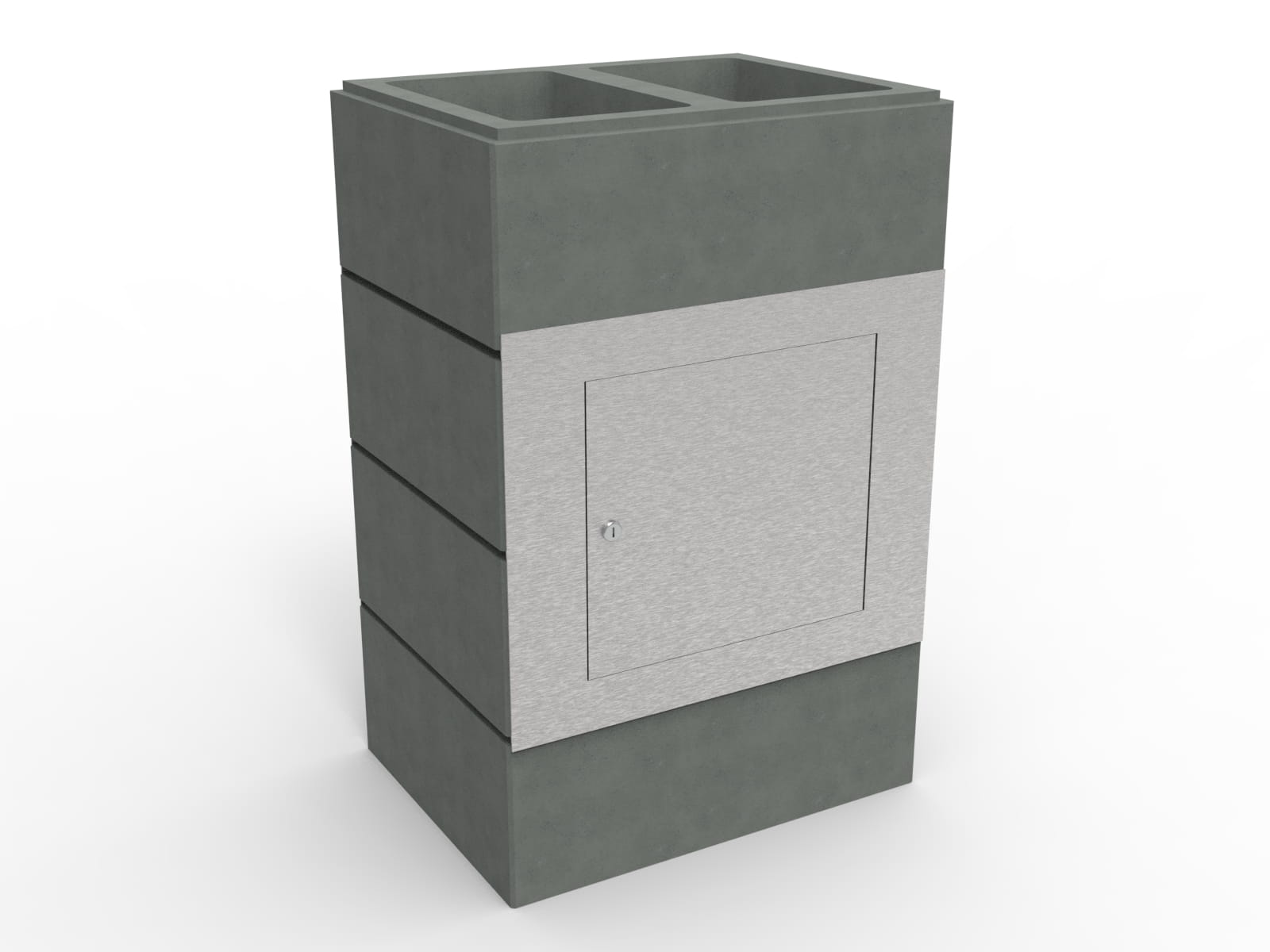 Skrzynka ma budowę panelową, składają się na nią: panel przedni, panel tylny i szuflada (pojemnik do wmurowania).