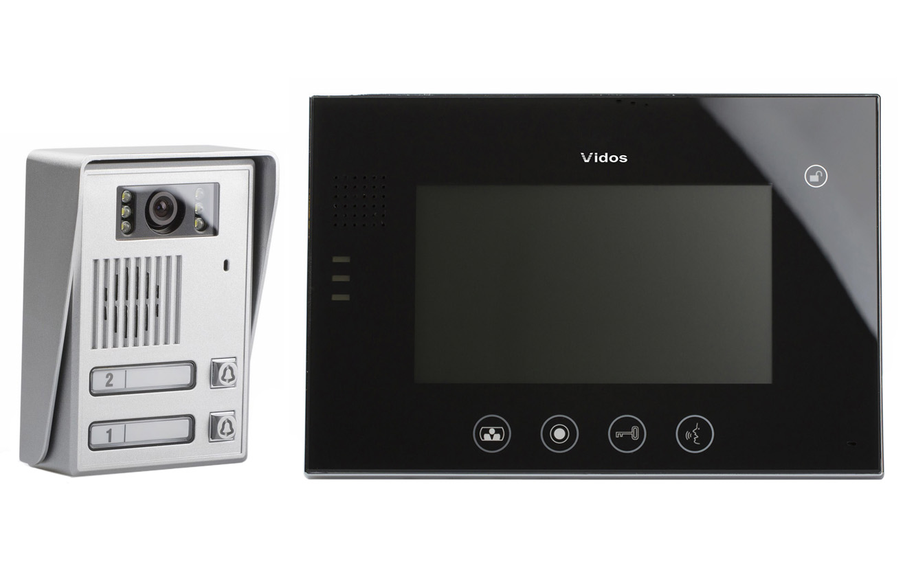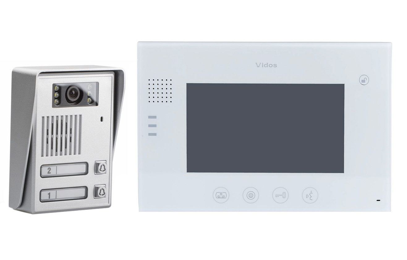 Kompletny zestaw wideodomofonowy VIDOS przeznaczony do domu dwurodzinnego - dla dwóch użytkowników.