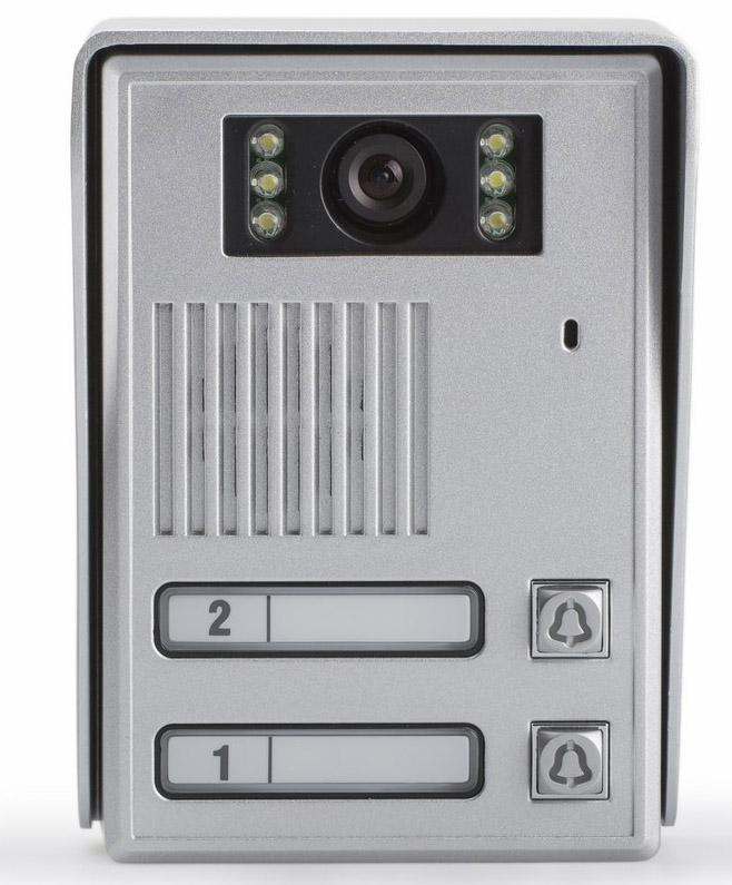 Natynkowa stacja bramowa z kamerą i 2 przyciskami wywołania.