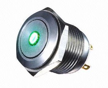 Wandaloodporny metalowy przycisk z podświetleniem punktowym. Średnica otworu montażowego 16 mm.