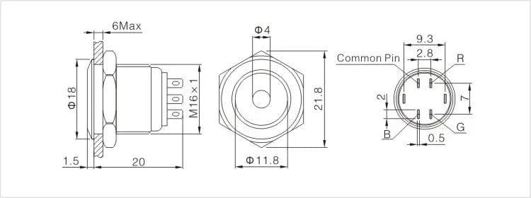 Średnica otworu montażowego 16 mm.