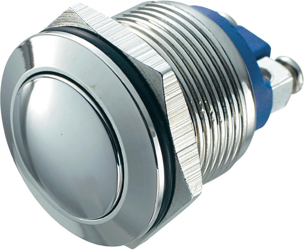 Wandaloodporny metalowy przycisk. Średnica otworu montażowego 19 mm.