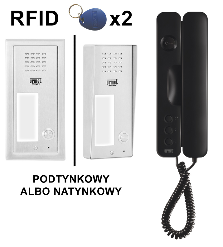 Zestaw domofonowy jednorodzinny Miwi-Urmet 6025/441-RF z czytnikiem RFID i czarnym unifonem Signo