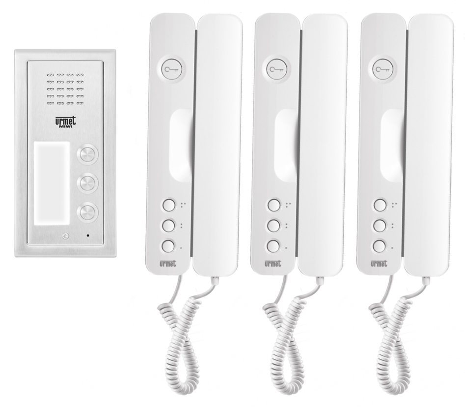 Zestaw domofonowy trzyrodzinny Miwi-Urmet 6025/PR3-403 z białymi unifonami Signo
