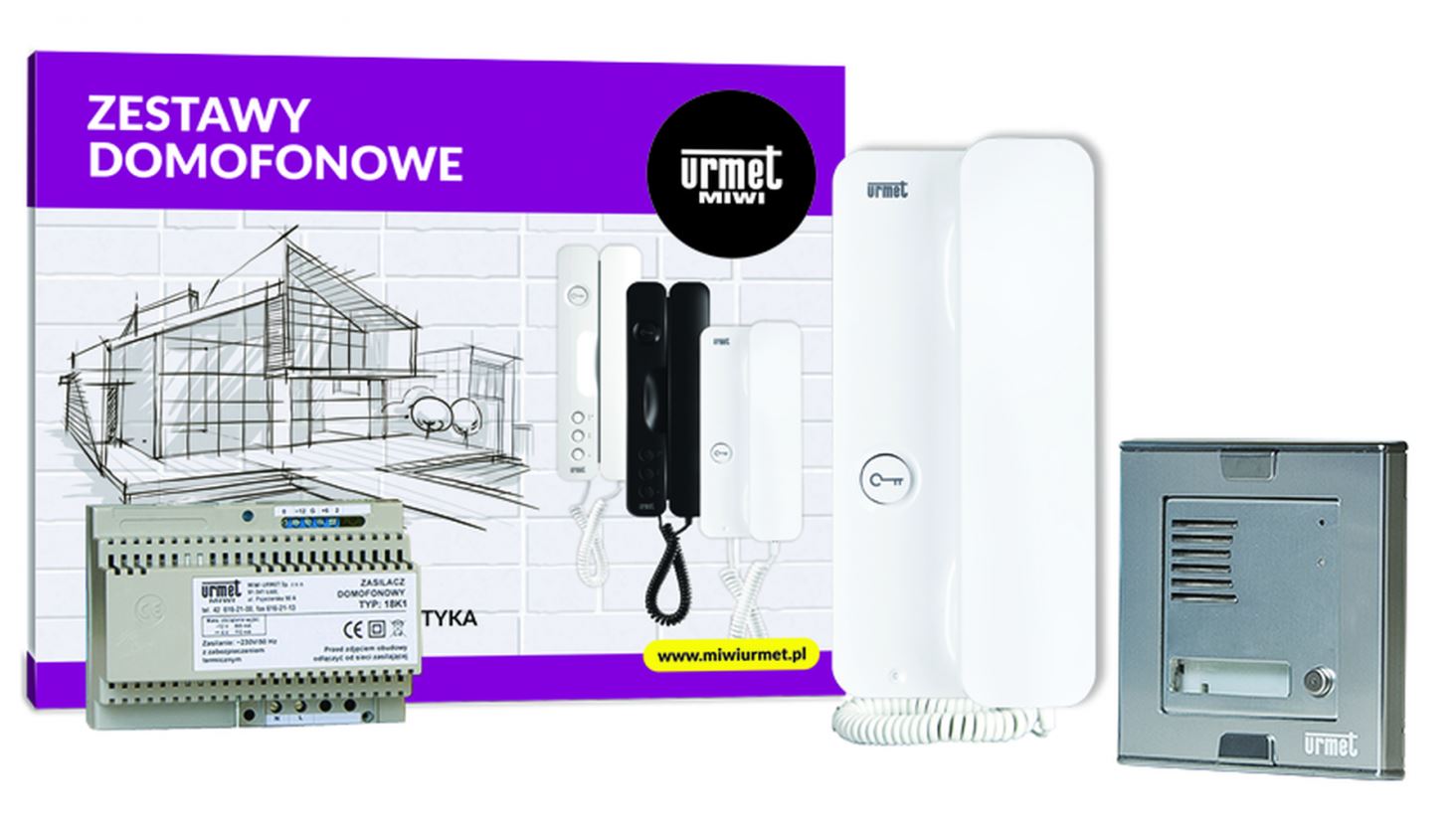 Zestaw domofonowy firmy Miwi-Urmet do domu jednorodzinnego - dla 1 abonenta.