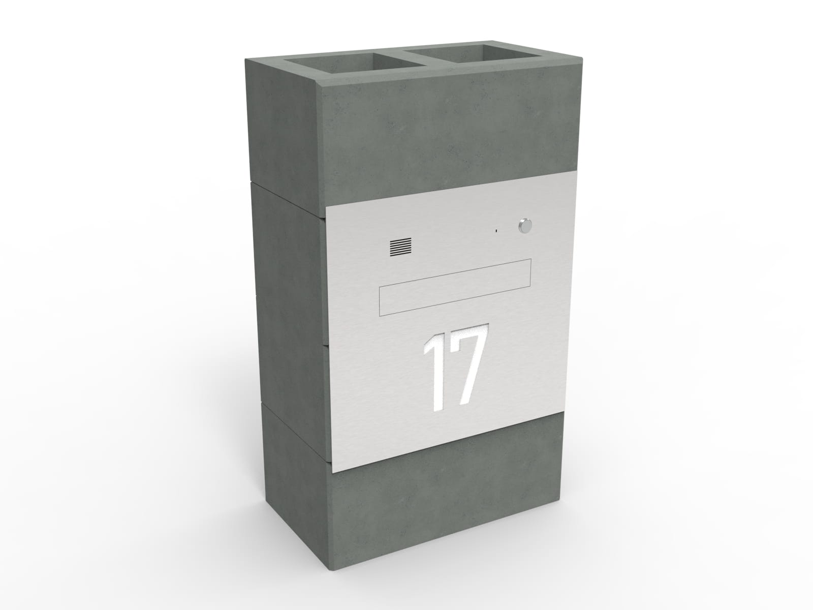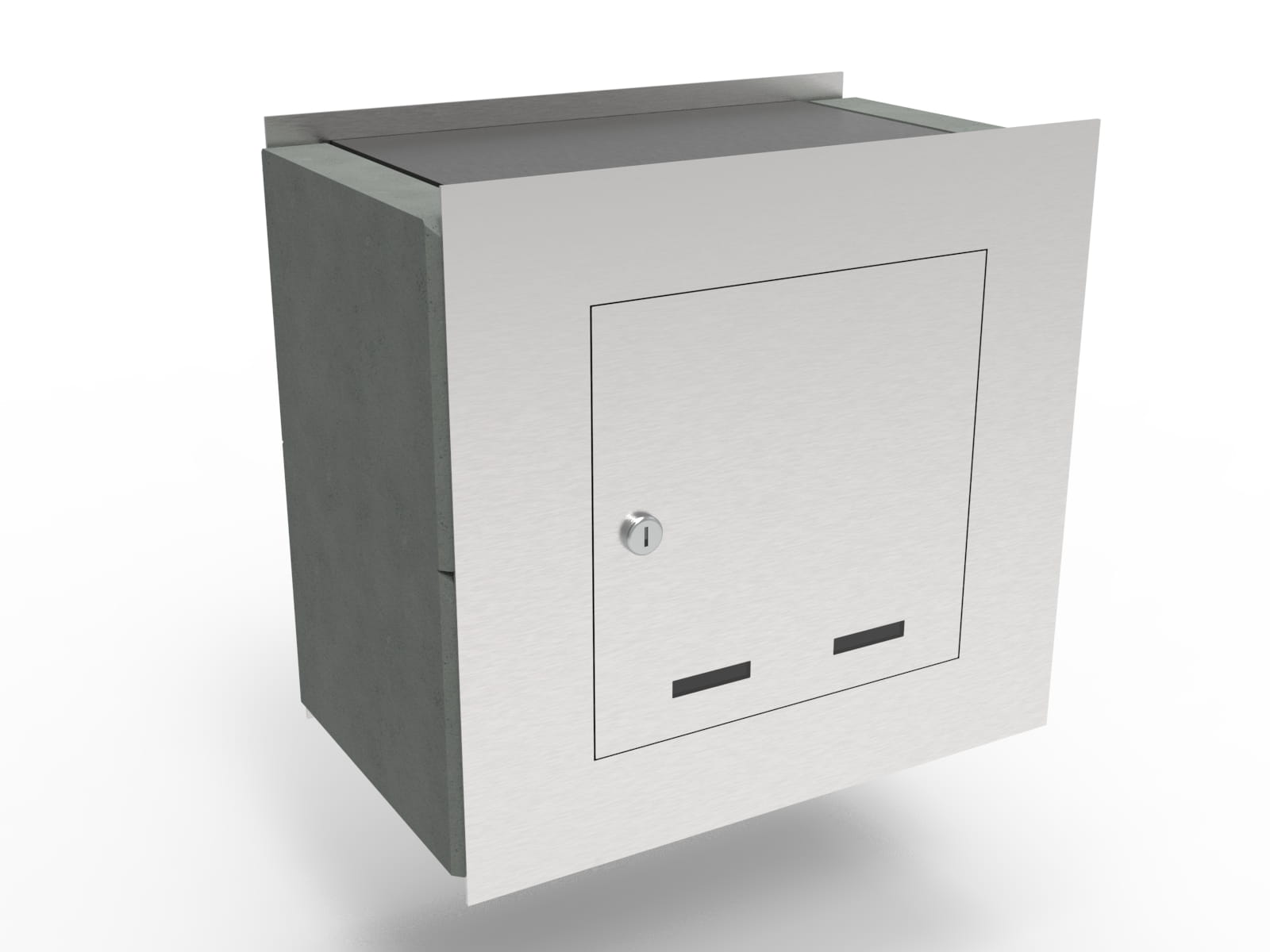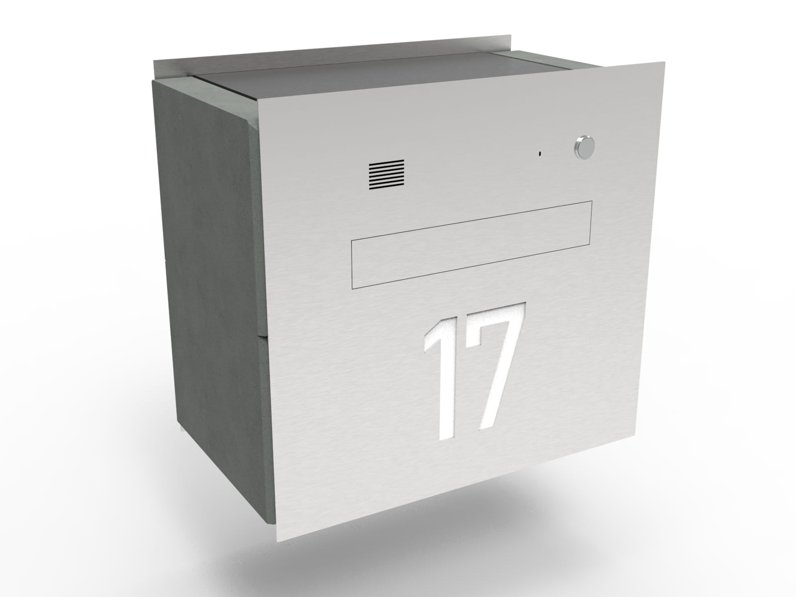Nowoczesna płytowa klapka osłaniająca otwór wrzutowy jest zlicowana z płytą przednią skrzynki na listy i tworzy z nią jedną estetyczną płaszczyznę.