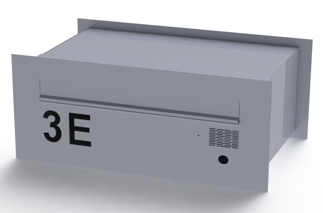 Panel przedni ma otwór wrzutowy na listy osłonięty klapką. Szeroki otwór (o wymiarach 325 x 30 mm) ma zagięcie uniemożliwiające wyjęcie korespondencji przez osoby niepowołane.