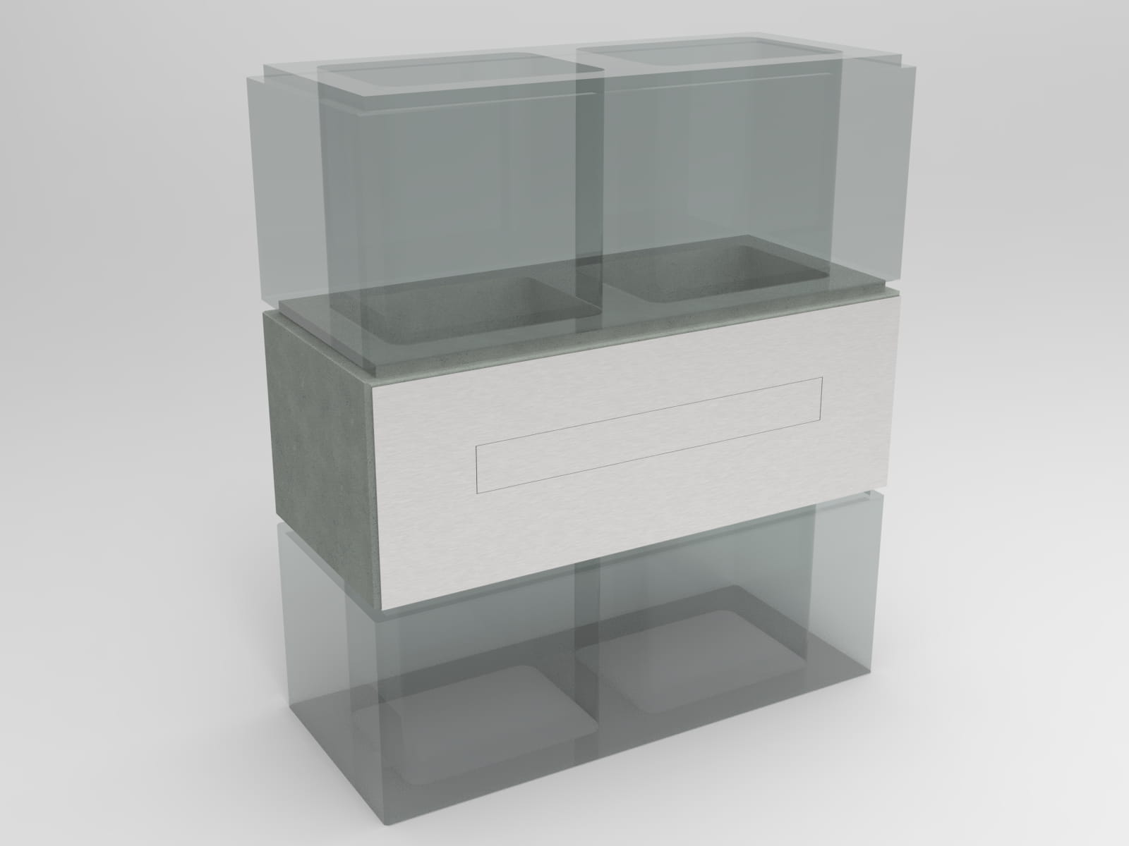 Skrzynka ma budowę panelową, składają się na nią: panel przedni, panel tylny i szuflada (pojemnik do osadzenia w bloczku).