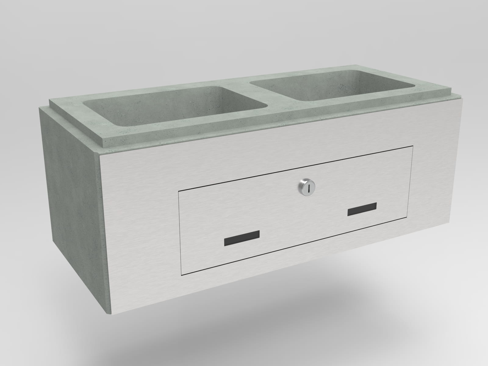 Skrzynkę możesz zamówić z frontem i tyłem wykonanym ze szlifowanej stali nierdzewnej lub ze stali lakierowanej proszkowo na wybrany kolor.