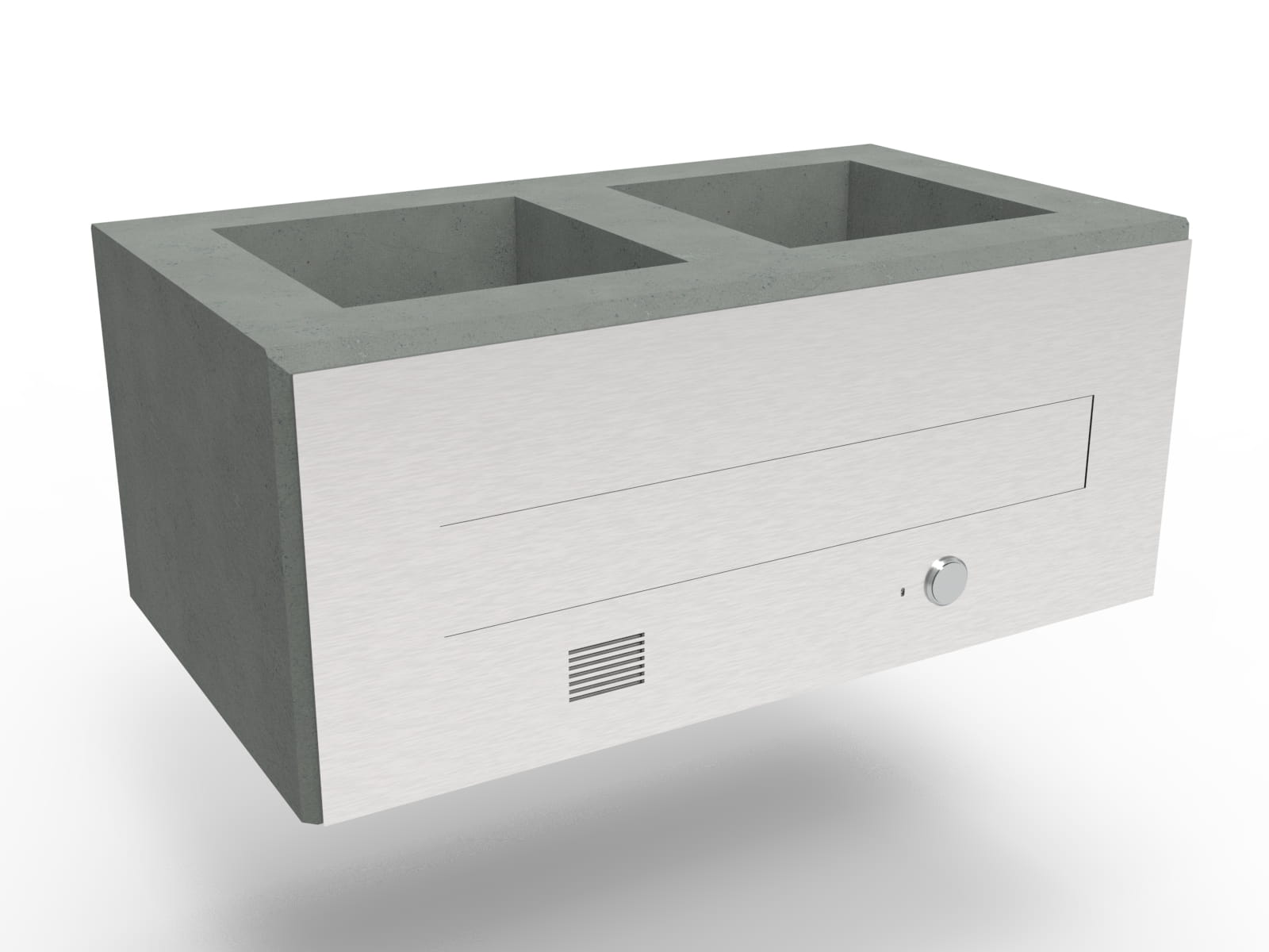 Skrzynkę możesz zamówić z frontem i tyłem wykonanym ze szlifowanej stali nierdzewnej lub ze stali lakierowanej proszkowo na wybrany kolor.