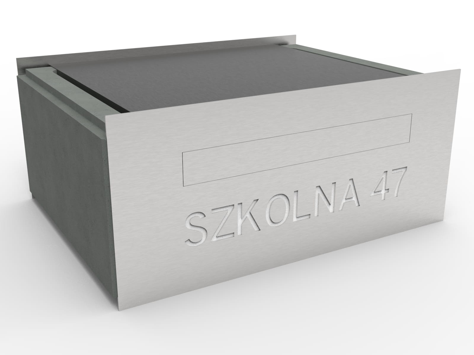 Do każdego zamówienia wykonujemy indywidualny projekt w kilku wersjach (różniących się krojem czcionki lub rozmiarem napisu). Finalny wygląd panela frontowego skrzynki ustalisz emailowo z naszym projektantem.