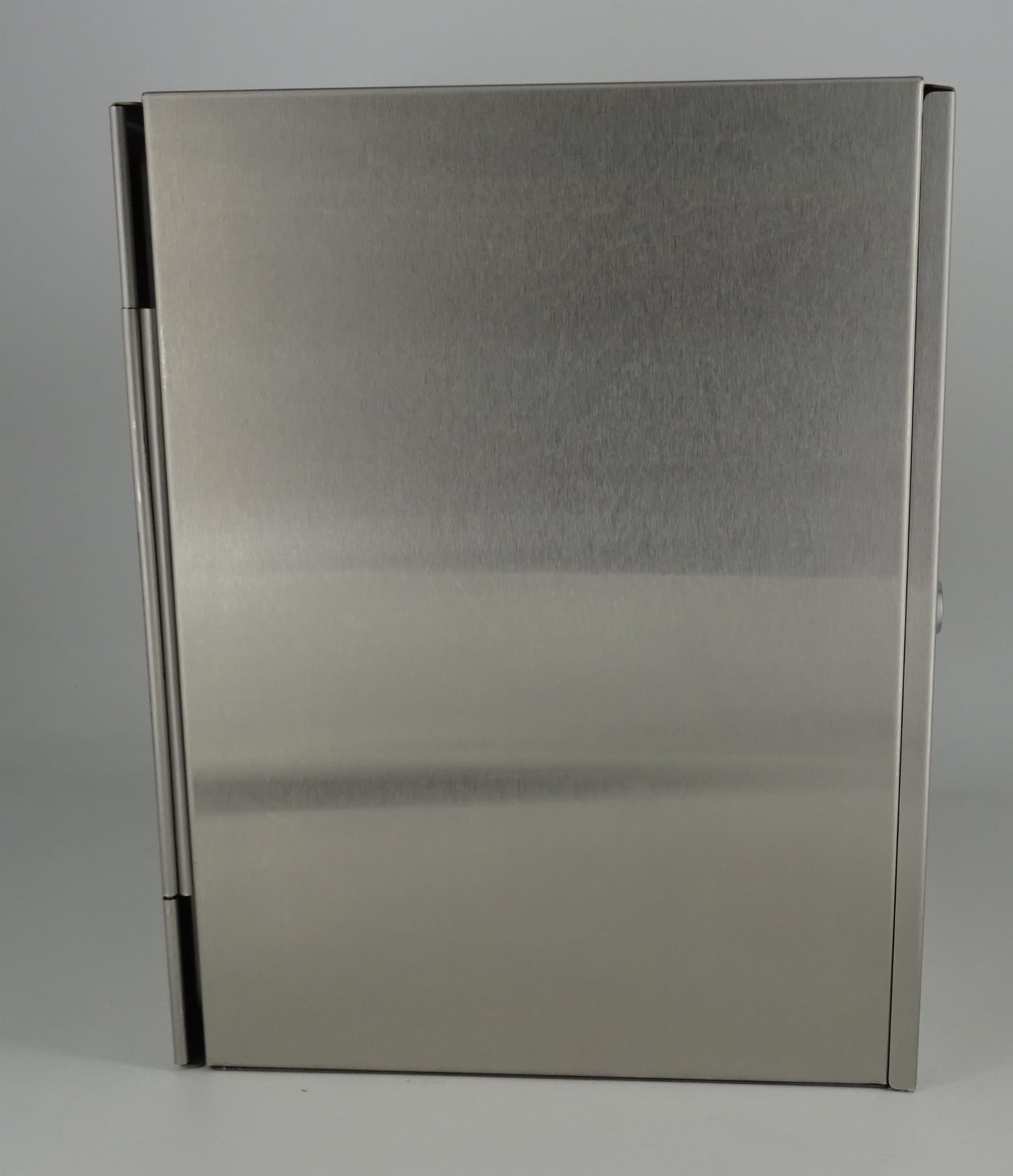 Skrzynka wykonana ze szlifowanej stali nierdzewnej.