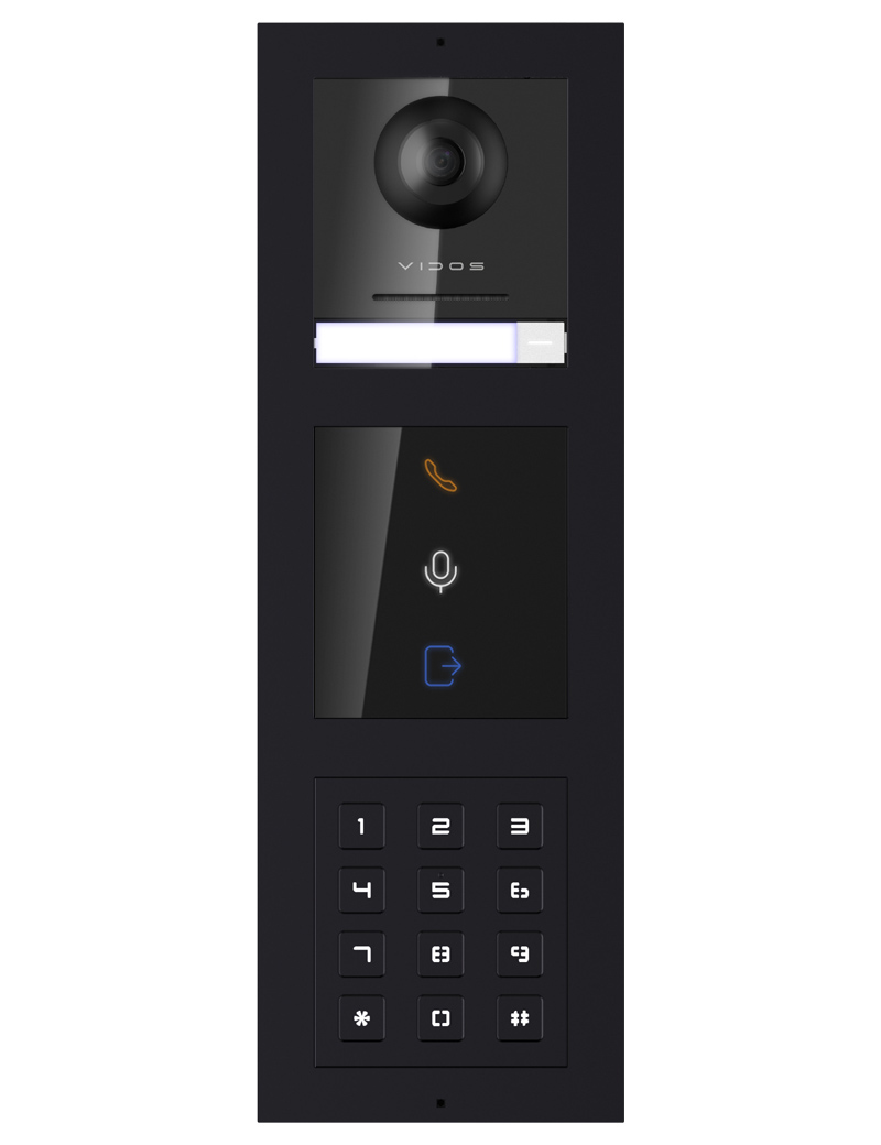 Kompletny panel zewnętrzny IP Vidos ONE wielorodzinny z 1 przyciskiem bezpośrednim, klawiaturą numeryczną i sygnalizacją stanu pracy - w ramce do montażu podtynkowego
