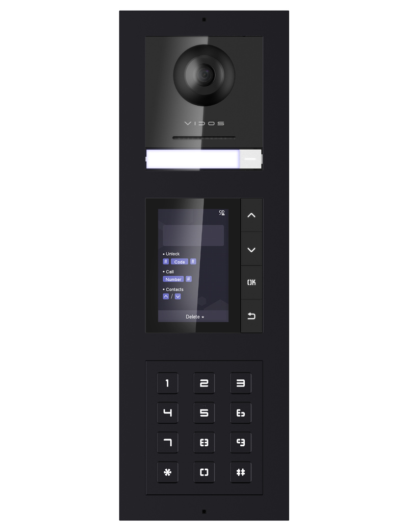 Kompletny podtynkowy zestaw stacji bramowej Vidos ONE - 1 przycisk wywołania, klawiatura numeryczna, wyświetlacz LCD z elektroniczną listą lokatorów.