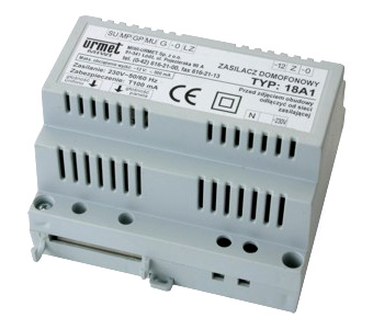 Wzmacniacz 18A2 to połączenie elektroniki domofonowej i zasilacza. Jest przystosowany do montażu na szynę DIN (zajmuje 6 modułów DIN), ale ma także ramkę, która zakrywa zaciski przewodów i pozwala na bezpieczny montaż zasilacza na ścianie.