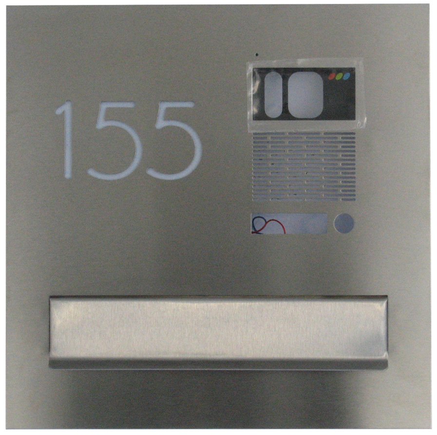 Przelotowa skrzynka VERONA z wideodomofonem Commax DRC-4CANS i wyciętym napisem
