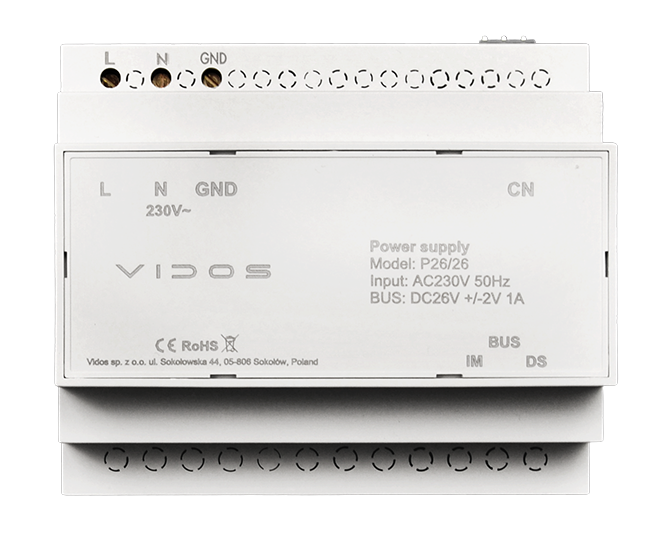 P26/26 to zasilacz systemowy przeznaczony do dwużyłowego systemu wideodomofonowego VIDOS DUO.